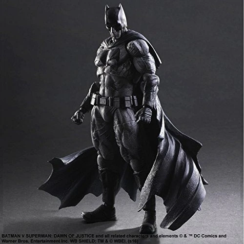 Description: From Square Enix. Batman v Superman: Dawn of Justice depicts the clash of two iconic heroes in the DC Comics universe. The difference between Batman as opposed to Superman, who has been heralded as the hope for mankind, is rendered through the roughness of the Batsuit and cape. In addition to the flexible materials used in various parts, rolling joints have been implemented in the upper arms and thighs for a wider range of mobility, allowing for improved poseability. From recreating the likeness of his face to the texture of his body and suit, there are fine details incorporated within the simplicity, and the paintwork makes the care that was put into the sculpting shine. This figure – which also includes the various signature gadgets that Batman carries in his arsenal, a display stand and interchangeable hand parts – exudes the image of a dark hero that stands against the light. This exclusive item for Comic-Con International: San Diego 2016 features a black and white pain scheme and is available for purchase while supplies last.