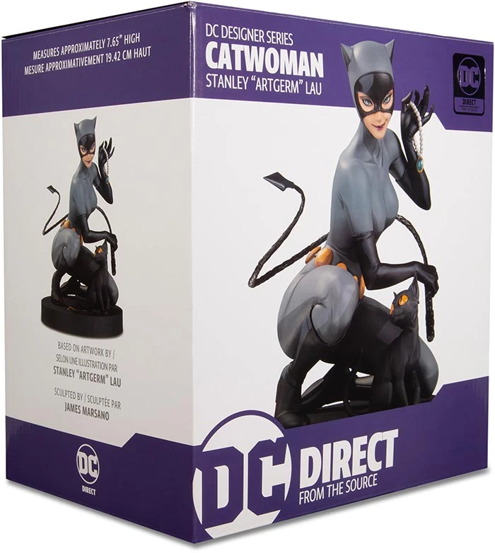 Description: Based on the work of Stanley Lau, this beautiful DC Designer Series statue is classic Catwoman all the way. Standing about 8 inches tall, this statue conveys all that is the character of Catwoman as she is seen with her iconic whip, a stolen jeweled necklace, and her cat companion. This 1/6 scale resin statue is hand numbered on the base..