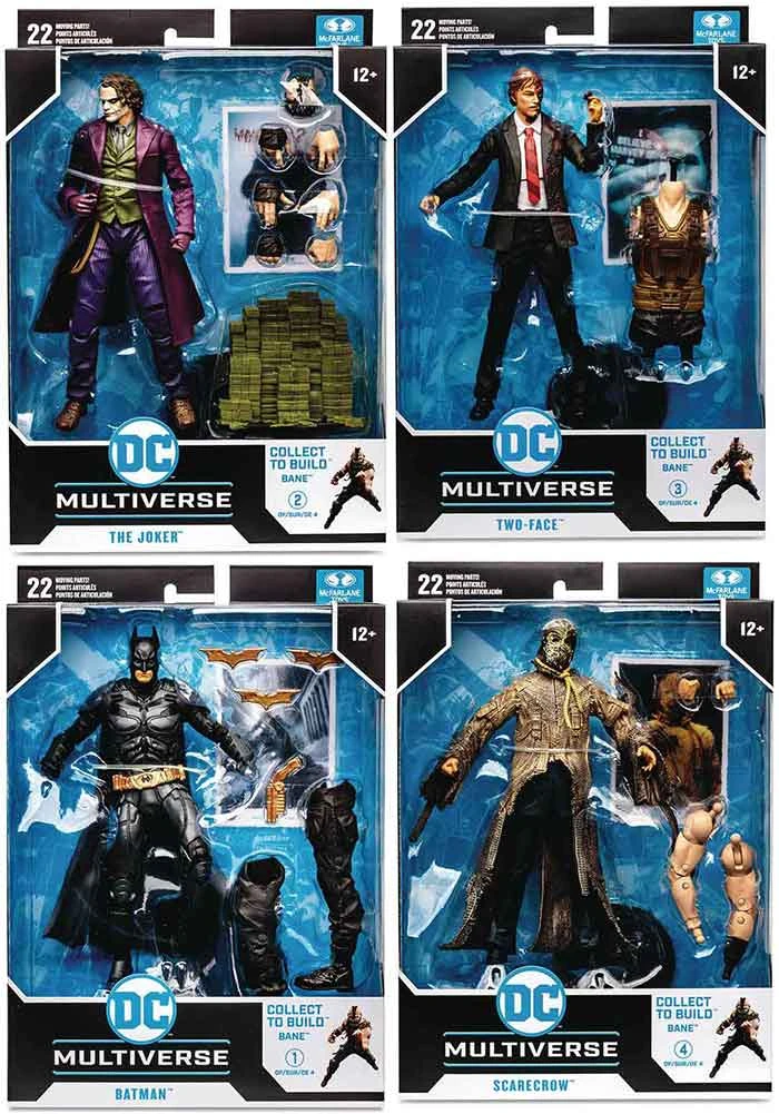 Description: From TMP/McFarlane’s Toys. These incredibly detailed 7″ scale figures based off The Dark Knight Trilogy are designed with Ultra Articulation with up to 22 moving parts for full range of posing and play. Each figure includes multiple accessories, plus 1 of 4 pieces that when combined with the rest of The Dark Knight Trilogy Build-a line will assemble Bane! Collect all McFarlane Toys DC Multiverse Figures.