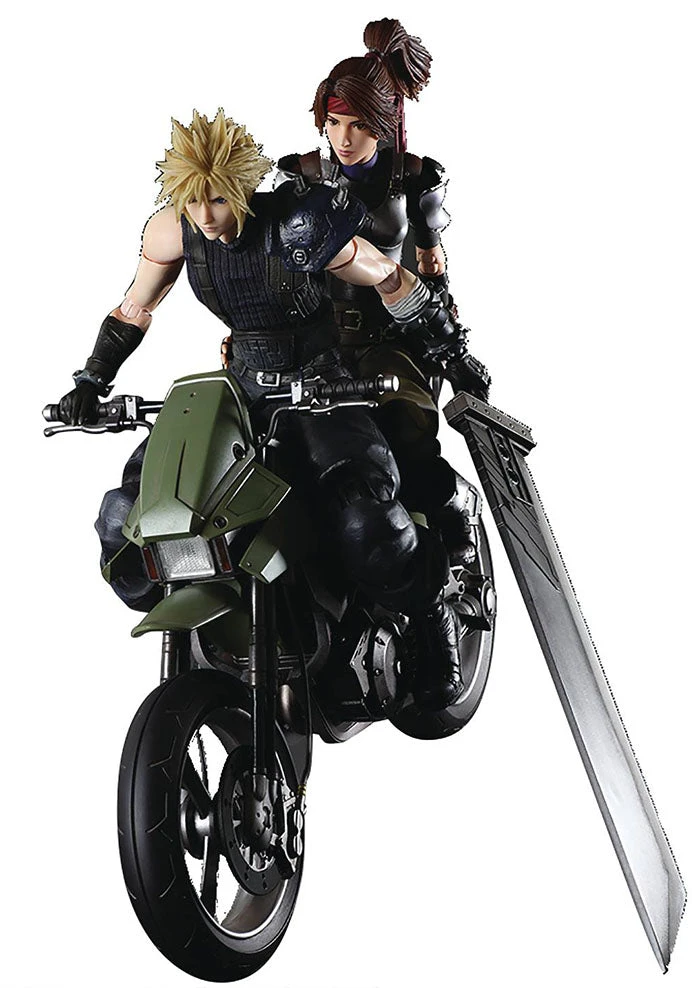 Description: Jessie, member of the anti-Shinra organization Avalanche from Final Fantasy VII Remake, the motorcycle from the bike chase mini game, and protagonist Cloud Strife, join the fray as Play Arts Kai action figures! Based on her updated look in REMAKE, her metallic armor, bandana, and even her waist pouches have been faithfully recreated. Her face pieces are interchangeable, allowing you to pose her while she’s smiling or winking. Machine gun and various interchangeable hands are included, which allow for reenactment of some dynamic poses from the game. The motorcycle that comes in the set is recreated with incredible realism, with beautiful front and back lights. Included in this set is an updated (version 2) Cloud, who now has additional interchangeable hands to hold the motorcycle handles, so you can call back to the scenes where Cloud and Jessie ride a motorcycle together. Figure includes display stand. .