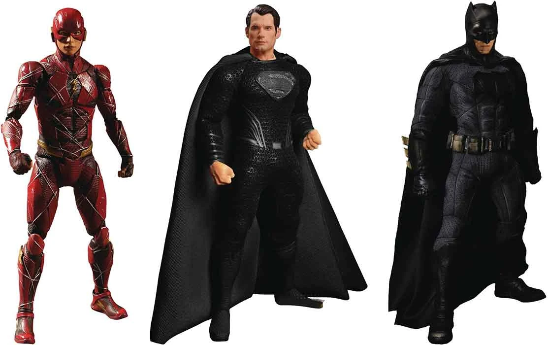 Description: Honoring director Zack Snyder’s opus vision of his film Justice League, Mezco Toyz proudly presents Batman, Superman, and The Flash in this Deluxe Steel Boxed collector’s set! All three heroes are newly outfitted as they are seen in Zack Snyder’s Justice League. Superman wears his Kryptonian recovery suit in black with metal tones, and his outfit features a integrated posing wire in his cape for maximum display options. Batman is outfitted in an upgraded Batsuit with protection enhancements and energy absorbing gauntlets, and his leather like cape has a posing wire built into it as well. The Flash is protected in his specialty-made suit allowing the speedster to move at superhuman speeds without harm. Each member features multiple new head portraits including a heat vision head for Superman and an unmasked Bruce Wayne portrait with the likeness of Ben Affleck. The Justice League DSB set comes complete with character-specific accessories including a Mother Box with light-up function and much more! Each One:12 Collective Zack Snyder’s Justice League DSB set is packaged in a collectable tin box, designed with collectors in mind..